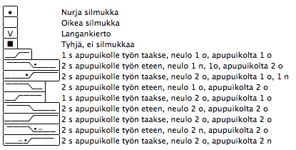 Kaaviot ovat vasenta lapasta varten. Oikeassa lapasessa neulo ohjeen mukaiset palmikonkierrot toisin päin.
