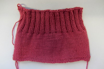 Mallitilkkuun neuloin tarkoituksella puolet joustinta kokeillakseni langan jousto-ominaisuuksia. Joustavuus on mielestäni tärkeimpiä ominaisuuksia kunnollisessa sukkalangassa, jotta sukat pysyvät jalassa mukavasti eivätkä venähdä heti pukemisen jälkeen muodottomiksi. Langassa on mukana elastaania tuomassa joustavuutta ja ainakin kokeilujen perusteella se vaikuttaa toimivan mukavasti. Aiemmin olen tutustunut elastaaniin villalangoissa, mutta niissä en ole kokenut sitä kovin tarpeelliseksi. Elastaani tuokin tähän lankaan sen, mitä tavallisista puuvillalangoista puuttuu.
