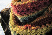 Tintti Hohti on suunnitellut myös kaulurin Omia polkuja kulkeville. Taija Elon Kapeet-kaulurin pintaneule sopii etenkin käsinvärjätyille langoille.