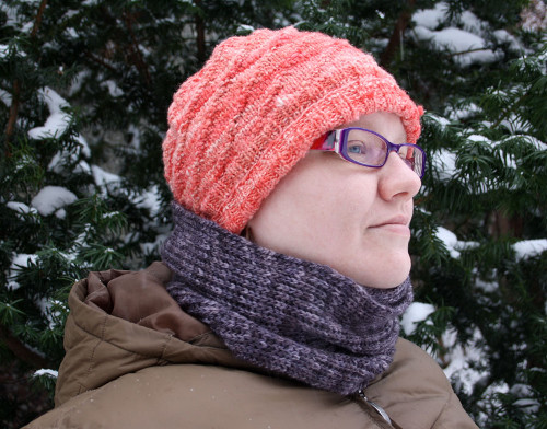 Kapeet-kaulurin inspiraationa toimi kaunis käsinvärjätty lanka. Ensimmäinen ajatus oli tehdä kämmekkäät - aloitinkin niitä, mutta jonkin matkaa neulottuani totesin, että lanka ei haluakaan tulla isona kämmekkäiksi. Siis uutta suunnitelmaa kehiin. Halusin päästää langan esiin ja paraatipaikalle, joten päädyin hyvin yksinkertaiseen pintaneuleeseen, joka on yhtä aikaa näyttävä, lämmin ja yksinkertainen.