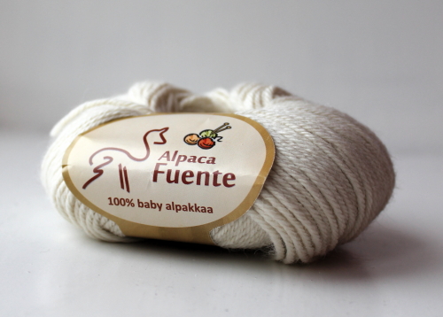 Alpaca Fuente on lohjalaisen alpakkatilan maahantuomaa alpakkalankaa Perusta. Lankaa on saatavilla sekä käsin- että koneneulontaa varten. Ulla testasi käsinneulottavaa versiota, josta on saatavilla 23 eri värivaihtoehtoa. Koneneulontaan soveltuvat vaihtoehdot mukaan lukien värejä on kaikkiaan 35. 50 gramman kerän vyötteessä ei ole langan juoksevuustietoja, mutta maahantuoja kertoo kerässä olevan 113 metriä lankaa.