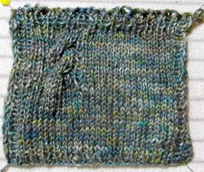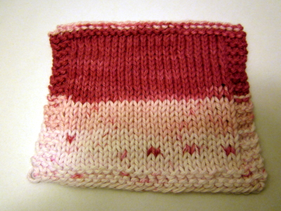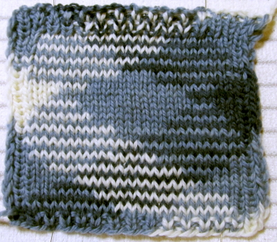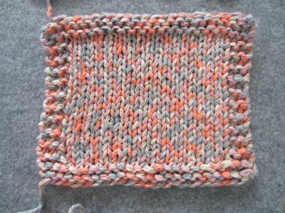 5 mm:n puikoilla pääsin juuri ohjetiheyteen, mutta kastelussa tilkku venähti valtavasti. Mitään neuletta, missä koolla on väliä, ei siis kannata tästä langasta tehdä ilman kasteltua mallitilkkua. Langassa yhden raidan mitta on niin lyhyt, että pyöröneulotussa pipossa kukin raita olisi luultavasti vain pari kerrosta korkea. Paidan kokoluokassa iso osa raitojen viehätyksestä taatusti katoaisi kokonaan, joten tästä langasta kannattaa tehdä hyvin kapeita kappaleita. Lanka on puuvillalangaksi aika paksua, joten Centosta neulotut asusteet saattavat toimia käytössä paremmin kuin isot työt.
