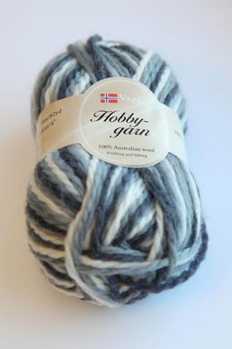 Hobbygarnin testilankakerä oli raidoitettu tumman- ja vaaleanharmailla sekä valkeilla raidoilla. Valkean ja tumman raidan pituus on noin 40 cm ja vaaleanharmaan raidan pituus noin 44 cm. Vaaleanharmaata on kerässä eniten ja säännöllisen värjäyksen tuloksena onkin mielenkiintoisia neulepintoja.