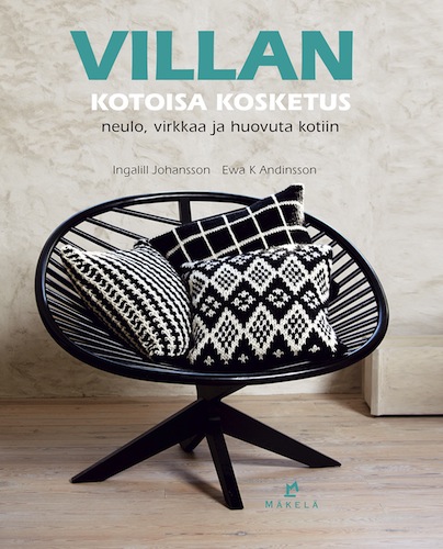 Vuosi sitten Ullassa arvosteltiin Ingalill Johanssonin esikoisteos Luonnonkauniit neuleet. Villan kotoisa kosketus on Johanssonin toinen neulekirja, ja se keskittyy neuleilla sisustamiseen. Ensimmäisen osan tapaan myös tässä kirjassa on käytetty pelkästään luonnollisia värejä ja työt on jaoteltu kolmeen osaan värien mukaan. Ensin esitellään valkoiset palmikko- ja pitsineuleet, sitten harmaat tyyliltään modernit neuleet ja lopuksi graafiset, mustavalkoiset työt.