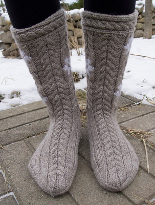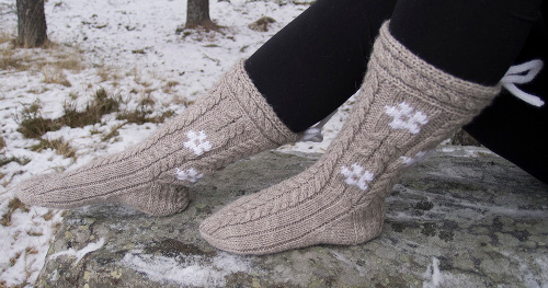 Sukat neulotaan varresta varpaisiin ja varret neulotaan tasona.