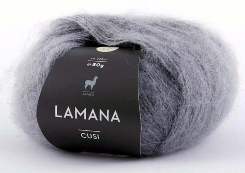 Lamana Cusi on mohairmaisen pörröinen täysalpakkalanka. Langan kolmesta säikeestä kaksi on kerrattu keskenään tiukemmin ja kolmas säie on löyhemmällä kierteellä näiden ympärillä. Tiukan ja löysän yhdistelmä tekee langasta lujan mutta pöyheän. Kerällä ja langalla on kaunis halo, jonka vuoksi kerää on melkein pakko silitellä. Värikartassa on 16 kaunista väriä, niin utuisia harmaita kuin herkullisen voimakkaita murrettuja sävyjä. Testattavana oli sävy numero viisi, hopeanharmaa.