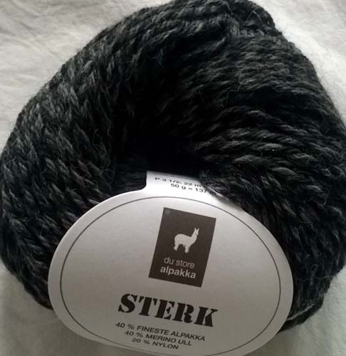 Sterk on miellyttävä sekoitus merinovillaa, alpakkaa ja nailonia. Testissä olleessa kerässä on kahta harmaan eri sävyä, joka tekee neulepinnasta mukavan elävän myös sileässä neuleessa. Neulepinnan eläväisyys yhdistettynä alpakan tuomaan lievään pörröisyyteen tarkoittaa kuitenkin sitä, että lanka on parhaiten edukseen yksinkertaisina pintoina.
