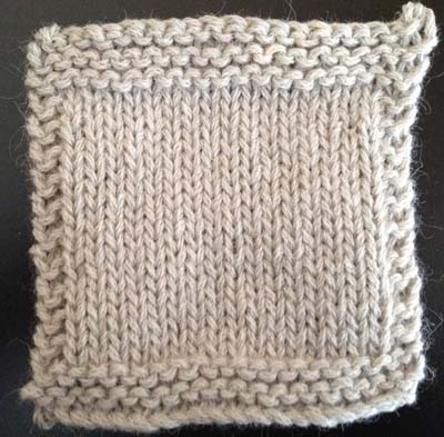 Neuloin mallitilkun 4 mm:n puikoilla. Tiheydeksi sain 20 silmukkaa ja 30 kerrosta kymmenellä sentillä. Vyötteen suositustiheys ja -puikkokoko tuntuvatkin varsin järkeviltä, sillä syntyvä neulos on peittävää, mutta silti laskeutuvaa. Mallitilkkuun mahtui kerältä yksi solmu, mikä on aina neulojan näkökulmasta pieni miinus näinkin vähäisen neulontamäärän aikana.