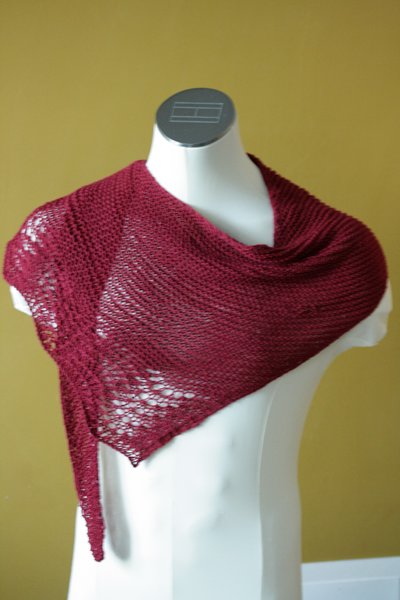 Kastele huivi kokonaan runsaassa vedessä, purista kuivaksi ja anna kuivua tasolla kevyesti muotoiltuna. Huomaa, että väljästi neulottu merinovillalanka venähtää kasteltaessa jopa 50 % alkuperäisestä.