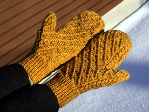 Kaissit ovat vinoraitaiset lapaset peukalokiilalla ja sädekavennuksilla. Pientä jujua löytyy peukaloista, joita koristavat yksinkertaiset palmikot.