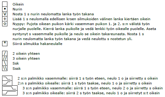Neulo kuten oikea lapanen, mutta käytä vasemman lapasen kaavioita.