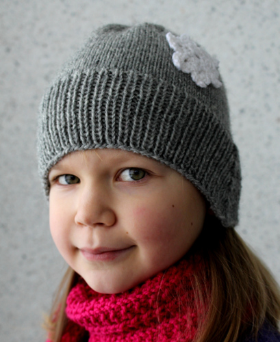 Tämän pipon muoto kehittyi vähitellen. Tyttäreni halusi ”tavallisen pipon”, joka varmasti suojaisi myös korvia ilman, että pipossa kuitenkaan olisi varsinaisia korvaläppiä. Aloin tehdä kokeiluja ja havaitsin, että pienehkökin levennys korvan kohdalla oli riittävä. Lisäksi huomasin, että sama malli sopisi myös minulle talvipyöräilyyn pyöräilykypärän alle. Pipo ei ole liian paksu, joten kypärä mahtuu sen päälle. Jos teet pipon kypärän alle, kannattaa koristeet jättää pois, koska ne tekevät piposta paksumman ja kasvattavat hieman pipon ympärysmittaa.