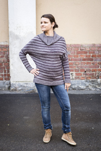 Tämä helppo neule valmistuu nopeasti raidoittamalla. Halusin tehdä mahdollisimman yksinkertaisen, mutta kuitenkin erottuvan puseron. Syntyi Linia, joka on väännös linjoista. Linjat ovat puserossa siisteissä riveissä.