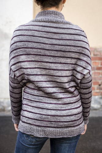 Raitamallineule on sileää neuletta. Neulo 8 krs päävärillä ja 2 krs kontrastivärillä. Raitamallineuletta toistetaan koko työn ajan lukuun ottamatta kaulusta, helmaa ja hihansuita, jotka neulotaan pelkästään päävärillä.