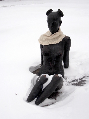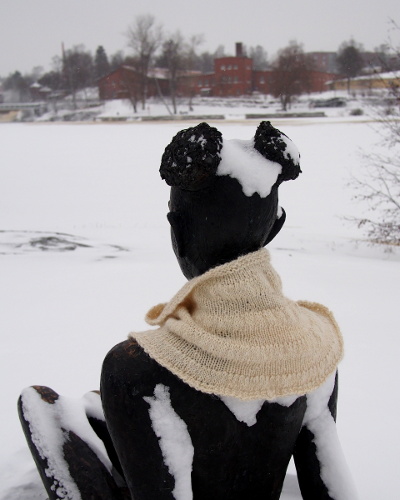 Kuvan patsas on Katariina Saksilainen Helsingin Vanhankaupunginkoskella. Katariina on jähmettynyt hetkeen katse kiinnittyneenä talven pysähtyneeseen maisemaan.