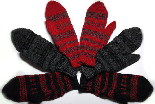 Yhdestä lankakerästä kumpaakin väriä syntyy helposti toisetkin lapaset, sillä yksi valmis lapaspari painaa n. 50 g.