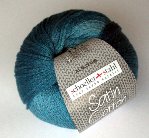 Scholler + Stahlin Satin Cotton on punosmainen merseroidusta puuvillasta tehty lanka. Testilanka on lisäksi värjätty turkoosin eri sävyin, mikä piristää kivasti muuten yksitoikkoista neulepintaa.