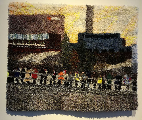 Omia suosikkejani olivat Sonja Salomäen ryijyt, jotka kuvasivat arkisia kaupunkinäkymiä, kuten Kaisaniemen jääpuistoa ja Myllypuron leipäjonoa. Myös Niina Mantsisen graffitiryijyt tuulettivat mukavasti perinteistä tekniikkaa. Jenni Hailin toistoon perustuva teoskokoelma, jossa taiteilija toistaa naista esittävää valokuvaa erilaisin tekniikoin aina maalauksista hamahelmien kautta ryijyyn, oli kiehtova niin monipuolisuudessaan kuin toisaalta monotonisuudessaan. Huumoria näyttelyyn toi Noora Schroderus, joka oli loihtinut setelien setämiehille langasta hienot peruukit.