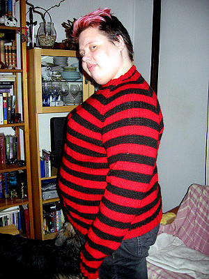 Ensimmäinen villapaitani tällä uudella neuleuralla tuli kuitenkin neulottua Anttilan Fleur-akryylistä. Puikkoina olivat sentään suorat ebenpuiset puikot, jotka vaimo toi minulle Vihreästä Vyyhdistä. Muistan vieläkin, miten ne olivat niin kauniin mustat ja kevyet! Mutta muistan myös sen, miten paljon akryyli kitisi ja vikisi puikoilla. Vaimoni Laika rakasti raitapaitaansa, mutta kuumaverisenä ei sitä oikeastaan koskaan kyennyt käyttämään. Harmi, koska tokihan aikuisen kokoisen villapaidan neulomiseen meni jokunen neuletyötunti.