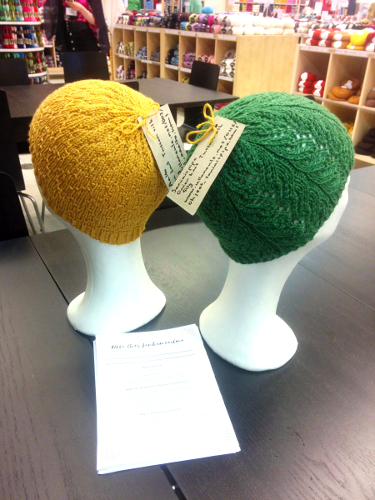 Vapaaehtoiset olivat ennakkoon neuloneet mallikappaleita Ullassa ilmestyneistä neuleista Lankamaailman lahjoittamilla langoilla. Helsingissä meillä oli ennakkomaistiaisena tästä numerosta esillä Sarka-huivi ja aiemmin ilmestyneistä numeroista A. Aalto (Ulla 1/12) sekä Saniaispipo (Ulla 1/16). Tämän numeron kansikuvaneule Viuhkat oli esillä tietokoneen ruudulla.