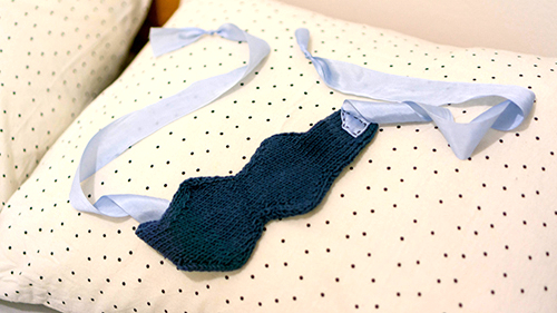 Totesin eräänä päivänä muutama vuosi sitten, että pääni ympärys on sen verran suuri, että lentokoneesta saatu unimaski olisi vaatinut huomattavaa tuunausta toimiakseen kunnolla. Harkitsin muutaman hetken, miten tämän toteuttaisin, mutta päädyin sitten loppujen lopuksi siihen, että helpointa olisi varmaankin neuloa mittojen mukaan omiin kasvoihin sopiva.