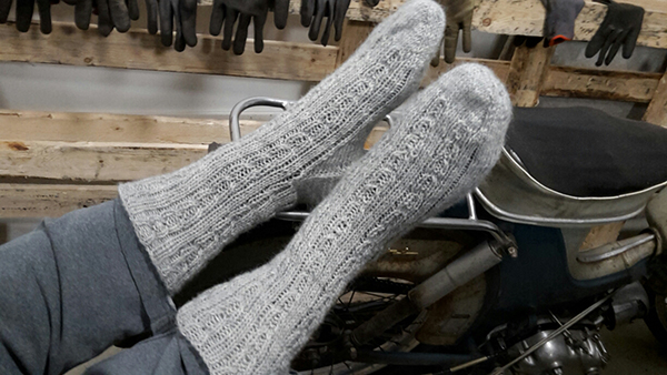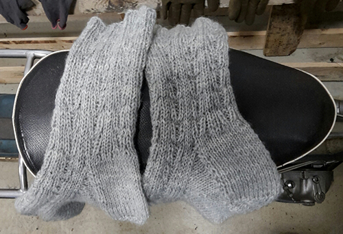 Oma ihmemieheni tarvitsee aina silloin tällöin uusia saapassukkia. Pelkkä perusvillasukka on tylsä neuloa, varsinkin miehen koossa. Angus-sukat ovat saaneet nimensä ihmemies MacGyverin mukaan ja niissä on varressa ja jalkaterän päällipuolella helppoa joustinneuletta pitämässä yllä neulojan mielenkiintoa.