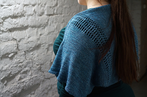 Toista pitsikuvio seuraavalta kerrokselta alkaen. Neuloessasi *nosta 2, neulo ne yhteen, langankierto*-kerrosta, luo uusi silmukka kerroksen alussa (kahden ensimmäisen silmukan jälkeen) ja kerroksen lopussa (ennen 2 viimeistä silmukkaa). Neulo nurjan puolen kerrokselle kaikki silmukat nurin, niin että nostat ensimmäisen silmukan neulomatta. Seuraavalla kierroksella nosta 1, neulo yksi, *nosta 2 silmukkaa, neulo ne takareunasta yhteen, langankierto*, toista *-* kunnes puikolla on 2 silmukkaa, neulo 2 silmukkaa.