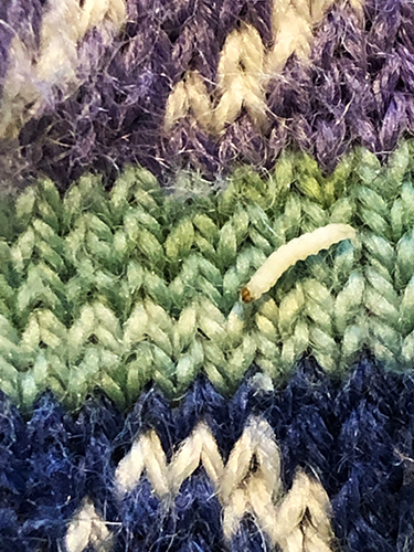 Nostettuani ensimmäisen sukan syrjään, näin sekä toukkia että niiden kuoria, jätöksiä ja seittiä. Ensimmäinen reaktioni oli: hyi yök, roskiin koko pussi! Järjen ääni kuitenkin voitti: päätin ottaa selvää, oliko kaikki tosiaan pilalla.