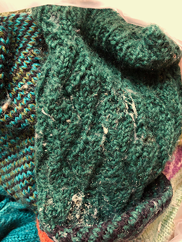 Itse en yhdestä pikku reiästä hätkähdä. Silloin luultavasti syynä on, että langassa on ollut heikko kohta tai että neule on tarttunut johonkin. Äskettäin tapahtui jotain paljon surkeampaa: kokonainen pussillinen ilmatiiviisti pakattuja villasukkia oli tuhottu! Ainakin siltä näytti, kun avasin pussin: