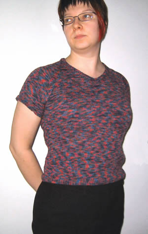 Lanka ja langan menekki Mallineuleessa käytetty Lana Grossa Merino Superfein (100% merinovillaa, 50g = 158m), 250 g Langan saatavuudesta ei ole tietoa, mutta langan voi korvata millä tahansa langalla, jolla on sama neuletiheys. Huomaa silloin, että langan metrimäärä vaikuttaa tarvittavaan grammamäärään. Neuletiheys 22 s ja 36 krs sileää neuletta = 10 cm Puikot Pyöröpuikot, 3 mm tai käsialan mukaan Koko M-L Valmiin puseron rinnanympärys 94 cm, pituus 51 cm, hihan pituus kainalon alta 6 cm. Muut tarvikkeet Silmukkamerkkejä OhjeNeule neulotaan pyöröneuleena ensin kainaloihin asti, sen jälkeen neulotaan hihat ja liitetään kaikki yhteen ja jatketaan pyöröneuleena loppuun asti. Työ on jaettu alaosaan, hihoihin ja yläosaan. Alaosa on etu-ja takakappale yhdessä ja yläosa on koko työ hihoineen. Huom! Neuleen pituus on vain 51 cm. Jos haluat tehdä pidemmän neuleen, neulo sileää enemmän helmaan joustinneuleen jälkeen. Muista tällöin, että annetut kappaleen korkeudet eivät enää pidä paikkaansa. AlaosaLuo 3 mm puikoille 226 s. Merkitse silmukkamerkeillä kappaleiden vaihtumiskohdat, eli laita merkit alkuun ja 113 silmukan päähän. Kerroksen alkumerkin kannattaa olla erilainen, jotta kerroksen alkukohta pysyy paremmin selvillä. Neulo 1o, 1n -joustinneuletta 2,5 cm ja jatka tämän jälkeen sileää. Kun kappaleen korkeus on 3 cm, aloita kavennukset. Neulo ensin 27 s, ja neulo seuraavat kaksi silmukkaa oikein yhteen takareunoistaan. Jatka neulomista, kunnes etukappaleesta on jäljellä 29 silmukkaa. Neulo sitten kaksi oikein yhteen. Tee samanlaiset kavennukset myös kappaleen takapuolella. Merkitse nämä kohdat silmukkamerkeillä (27 silmukkaa kappaleen alusta ja 27 silmukkaa kappaleen lopusta) ja tee kavennukset aina näiden silmukkamerkkien sisäpuolella. Tee kavennukset aina 2 cm:n välein vielä 5 kertaa. Kavennusten jälkeen kappaleen korkeus on 13 cm ja silmukoita on 202 kpl. Jatka sileää, kunnes kappaleen korkeus on 22 cm ja aloita sitten lisäykset. Tee lisäykset vastaaviin kohtiin kuin kavennukset. Lisää 6x4 silmukkaa (2s/puoli) 2 cm välein. Lisäysten jälkeen kappaleen korkeus on 31 cm. Jätä kappale odottamaan. HihatLuo 3 mm:n sukkapuikoille 76 silmukkaa. Neulo suljettuna neuleena 1o, 1n –joustinneuletta 1,5 cm. Merkitse kerroksen vaihtumiskohta silmukkamerkillä. Jatka sileää ja aloita lisäykset ensimmäisellä sileän neuleen kerroksella. Lisää silmukat aina kierroksen ensimmäisen silmukan jälkeen ja ennen viimeistä silmukkaa (joka lisäyskerroksella lisäät siis 2x1s). Lisää silmukoita 1 cm:n välein vielä 4 kertaa. Lisäysten jälkeen hihassa on 86 silmukkaa. Lopeta hihan neulominen kun hiha on 6 cm korkea. Älä päätä silmukoita, vaan jätä ne odottamaan ja neulo toinen hiha samalla tavalla. YläosaLiitä hihat alaosaan. Päätä hihojen ”saumakohdassa” ja alaosan etu-ja takakappaleiden liitoskohdissa 14 silmukkaa siten, että silmukat jakautuvat tasaisesti etu-ja takaosille. Merkitse silmukkamerkeillä hihojen ja alaosan liitoskohdat. Puikolla on nyt yhteensä 242 silmukkaa. Neulo 1 kerros sileää ja aloita raglankavennukset silmukkamerkkien kohdalla. Kavennukset tehdään joka toinen kerros aina silmukkamerkin kummallakin puolella siten, että 3 s ennen silmukkamerkkiä neulo 2o yht ja 1s silmukkamerkin jälkeen neulo 2o yht takareunastaan. Jatka sileää, kunnes pääset etukappaleen toisen silmukkamerkin kohdalle ja tee kavennukset toisinpäin, siis 3 s ennen silmukkamerkkiä neulo 2o yht ja 1 s silmukkamerkin jälkeen neulo 2 oyht takareunastaan. Tee vastaavanlaiset kavennukset selkäpuolella. Huom! Tässä raglansaumasta muodostuu neljän silmukan levyinen, mutta jos haluat kapeamman sauman, voit tehdä kavennukset myös suoraan silmukkamerkin molemmilla puolilla. Tällöin saumasta tulee 2 s leveä. Jatka kavennuksia joka toisella kerroksella, kunnes kappaleen korkeus on 39 cm. Jatka hihakavennuksia, ja aloita samalla kaula-aukon kavennukset. Kavenna ensimmäisellä kerroksella keskisilmukka ja joka toisella kerroksella keskisilmukan molemmilla puolilla 1 s kaula-aukon reunasta. Jatka kavennuksia, kunnes kappaleen korkeus on 49 cm. Tee nyt takaosan kaula-aukko. Päätä keskeltä 33 s. Jatka neulomista (ja kavennuksia), kunnes kappaleen korkeus on 51 s. Päätä kaikki silmukat. Kaula-aukkoPoimi 3 mm:n pyöröpuikoille kaula-aukon reunasta 132 s. Neulo 1o, 1n -joustinneuletta siten, että kaula-aukon etuosan keskikohdan kohdalle tulee oikea silmukka. Neulo joustinneuletta 5 krs niin, että kavennat kaula-aukon etuosan keskisilmukan molemmin puolin 1 s joka toinen kerros. Päätä silmukat joustavasti. ViimeistelyOmpele hihasaumat, päättele langanpätkät. Kostuta