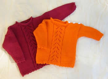 Pitsikuviot muuten yksinkertaisessa neuleessa sekä puseron pitkä helma ovat suloisia mutteivät liian prinsessamaisia yksityiskohtia, ja lastenvaatteiden pesijää miellyttää napakka lanka joka kestää konepesun. Yksinkertainen malli valmistuu nopeasti, sillä suurin osa työstä on sileää neuletta. Lanka ja langan menekki Mayflower Cotton 8, 100 – 150 – 150 – 200 g. 100% puuvilla, 50 g = 170 m. Kuvissa käytetty aniliininpunaista (554) ja kirkkaan oranssia (639). HUOM! 100 g lankaa riitti pienimpään kokoon juuri ja juuri, joten ylimääräisen kerän varaaminen voi kannattaa. Korvaaviksi langoiksi käyvät melko tasapintaiset puuvilla- ja puuvillasekoitelangat. Merseroidulla langalla pinnasta tulee juhlavampi.