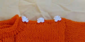 Varsinkin pienemmille lapsille pusero kannattaa tehdä toiselta olalta napitettavaksi pukemisen helpottamiseksi, esimerkiksi näin (tarvitset noin 3 mm virkkuukoukun sekä kolme pientä nappia): Ompele oikea olkasauma. Virkkaa pääntien vasemmasta reunasta alkaen takakappaleen vasemmalle olalle rivi kiinteitä silmukoita. Jatka kiinteiden silmukoiden virkkausta etukappaleen olalle ja tee tasavälein kolme napinläpeä: virkkaa napin koosta riippuen 3-4 ketjusilmukkaa ja jatka kiinteiden silmukoiden virkkausta 2 silmukan päässä edellisistä. Ompele napit takakappaleen olalle nappilenkkien kohdalle. Ohjeessa kaula-aukko on mitoitettu niin isoksi, että puseron saa vedettyä lapsen pään yli. Jos teet olalle napituksen, voit tehdä puseroon kaula-aukon pienemmän koon ohjeen mukaan.