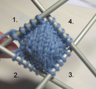 Neulo pari kertaa molempien puikkojen silmukat. Nyt sinulla on sievä pieni neliö.