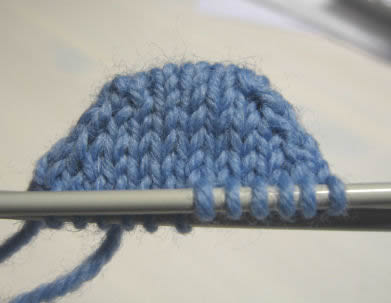 Huom: jos sinulla on käytössä paksu lanka, voi olla riittävää että neulot molempien puikkojen silmukat vain kerran. Kärjen reunaan voi muutoin tulla pieni pykälä. |