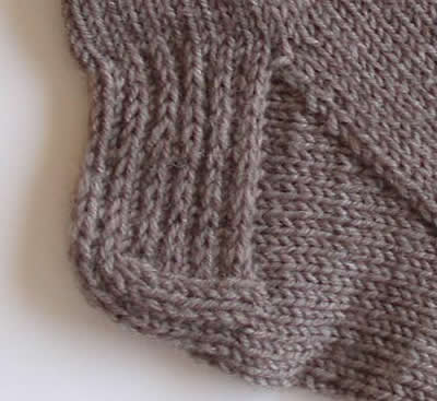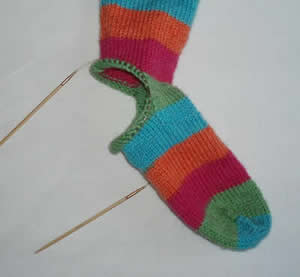 Kuvassa olevan sukan kantalappu on neulottu nostamalla silmukoita seuraavan