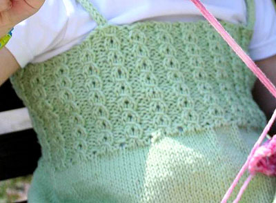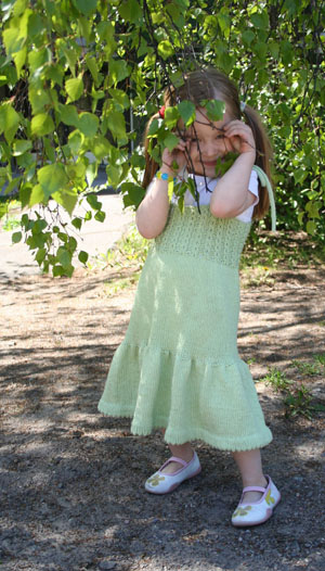Nimi puolestaan juontaa pihallamme kasvavan kauniin taalainkoivun latinankielisestä nimestä. Kun kirjoitin mekon ohjetta, 3-vuotias tyttäreni kiipesi syliini ja alkoi kertoi kerhossa oppimastaan laulusta: ”Me laulettiin, että hiirenkorvat ovat vihreät.” Hän mietti hetken ja jatkoi: ”Ne hiiret on varmaan värittäneet korviaan tusseilla.” Kun sain naurultani puhuttua, kerroin, että hiirenkorviksi kutustaan pieniä puun lehtiä ja kävimme katsomassa niitä pihan koivussa. Lanka ja langan menekki Novita Suvi, 250 g (viimeisestä kerästä jäi yli puolet yli) Suvi on Novitan kampanjalanka, jonka saatavuus vaihtelee. Suurin piirtein sama neuletiheys on mm. Novita Tennesseellä ja Garnstudio Muskatilla. Puikot 3,5 mm pyöröpuikot (alkuun 40-50 cm, loppuun 60-80 cm pitkät) Neuletiheys 22 s ja 29 krs = 10 cm Muut tarvikkeet Silmukkamerkki kerroksen vaihtumiskohtaan Koko 92/98 cm Mallineule Yläosan valepalmikko (mallineule on jaollinen viidellä silmukalla):