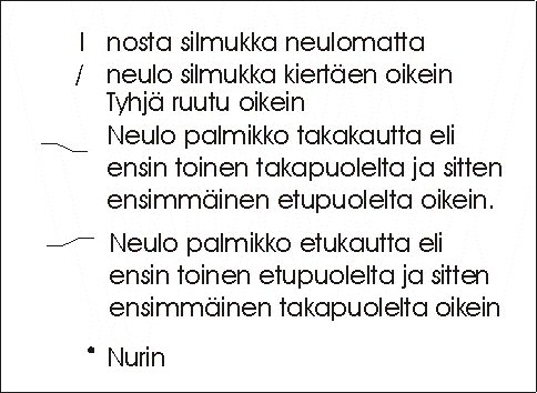 Ohje ja kuvat: - Ohjeet Meri Markus: Katja Kvintus: Distant Knitter: Tuula: Kristel Nyberg: Marjut Katajala: Pia Tuononen: Kristel Nyberg: Tiina Kovalaine: Juulia: Pia Tuononen: Anni Laine: Sari Åström: Marja Venäläinen: Tuulia Salmela: Katja Kvintus: Satu Ruokamo: Distant Knitter: Distant Knitter: Pia Tuononen: