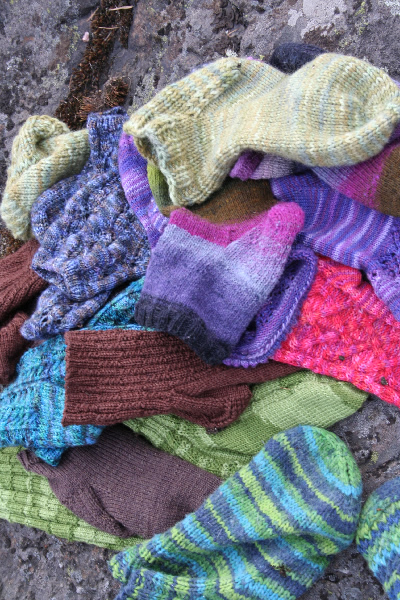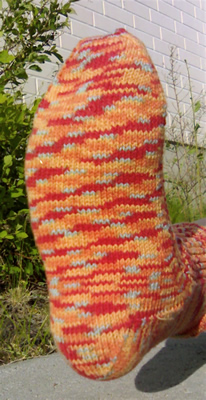 Lanka on puhdasta villaa ja olin aluksi hiukan huolissani langan kulutuskestävyydestä. Superwash-ominaisuudesta huolimatta värjääjä suosittelee näistä langoista tehdyille sukille käsinpesua nurinpäin käännettynä ja niin minä olen omat sukkani pessyt.