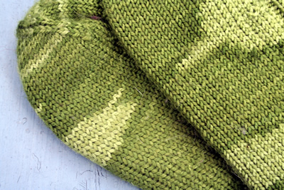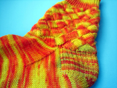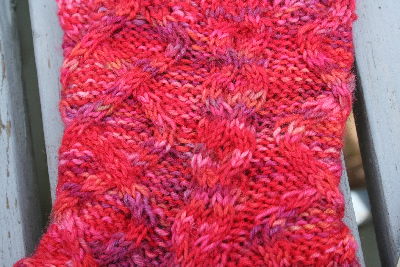 Puikoilla Casbah Sock tuntuu paksummalta ja rotevammalta kuin muut 2,5 mm puikoilla neulomani langat, vaikka se ei olekaan oleellisesti paksumpaa. Lanka tuntuu ryhdikkäältä ja miellyttävältä ja soljuu mukavasti eteenpäin. Merinovilla ja kashmir tekevät langasta pehmeän ja 10 % nylonia tuo mukaan kestävyyttä. Neulepinnasta silmukat erottuvat hyvin ja palmikonkierrot ovat jänteviä, vain kirjava väriyhdistelmä saa mallineuleen hieman katoamaan - lähes yksivärisessä langassa palmikot voisivat erottua paremmin kuin pätkävärjätyssä. Se ei kuitenkaan haittaa, sillä langan värit ovat niin herkulliset, että mitään ihmeellistä mallineuletta ei tarvita. Väritkin käyttäytyvät hyvin. Ne muodostavat kapeahkoja raitoja, mutta eivät lätäköidy tai läikity.