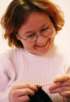 Heli SuhonenHeli Suhonen alias Villasukka on tehnyt käsitöitä koko ikänsä. Mamma opetti virkkaamaan 5-vuotiaana ja siitä se lähti. Välillä opiskelun huumassa oli hiljaisempi kausi, mutta nyt menee taas lujaa. Neulominen on se rakkain käsityö, jolta tosin kehräysvillitys yrittää viedä kaiken ajan. Myös virkkaus, nypläys, kutominen, ristipistot ja ompeleminen onnistuvat ainakin jotenkuten. Harrastusta haittaavat pahasti kaksi kolliriiviötä ja työ eli kielten paukutus oppilaiden päähän, toisaalta harrastus ja työ tasapainottavat hyvin toisiaan. Kieltenopetuksessa ei ihan joka päivä näe konkreettisia tuloksia samalla tavalla kuin käsitöissä - ja kokeita valvoessa voi ihan hyvin neuloa! Ota yhteyttä Heliin: woollyvilla @ yahoo.co.uk