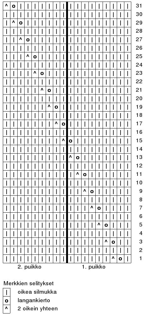 - 6. kerros: * lk, 4 o*, toista *-* 8 kertaa eli kerroksen loppuun
