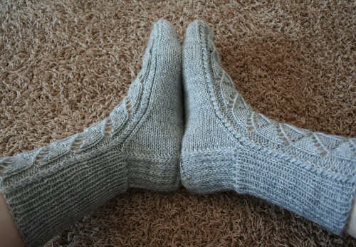 Neulo toinen sukka samoin, halutessasi voit toisessa sukassa tehdä palmikonkierron peilikuvaksi. Mallisukissa palmikonkierrot ovat molemmissa sukissa samanlaiset.