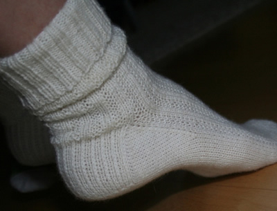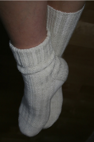 Haaveilin alun perin valkoisista pitsisukista, mutta varsin pian totesin, etten sittenkään halua varsinaista pitsiä. Työnimenä sukille oli Neige, mutta nimi sai väistyä, sillä vaikka Suomen suvi on kovin lyhyt, niin toivottavasti se on kuitenkin vähäluminen. ’Ne on vaan sukat’ nimi on ylistys yksinkertaisuudelle: kaiken ei tarvitse olla Suurta Taidetta, vaan käsityö itsessään käsityönä voi olla arvokasta.