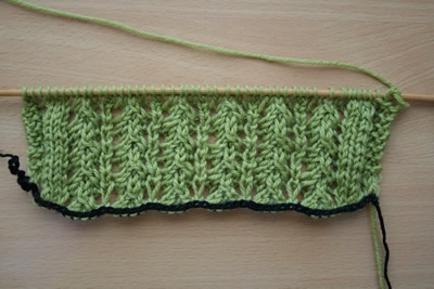 Voit myös neuloa vielä nurjan kerroksen nurin ja päätellä tavallisella ylivetämiskavennuksella seuraavalla oikealla kerroksella, mutta ensimmäisen tavan avulla saat reunasta kauniin ja tarpeeksi löyhä. Käytä tätä tapaa etenkin, jos käsialasi on tiukka.