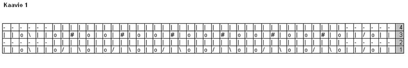 Aloita seuraavalla kerroksella neulominen kaavion 1 mukaan (op). Huomaa,