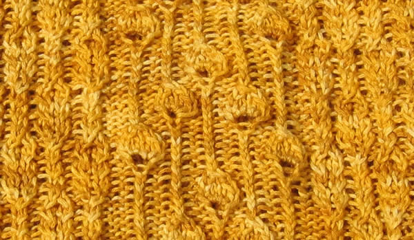 Idea tähän neuleeseen lähti hehkuvan keltaisesta pätkävärjätystä bambulangasta, joka toi mieleen viljan ja tähkät. Neuleeseen valitsin pari erilaista tähkämäistä palmikkokuviota. Jos haluat palmikoiden erottuvan selkeästi neulepinnasta, valitse yksivärinen lanka.