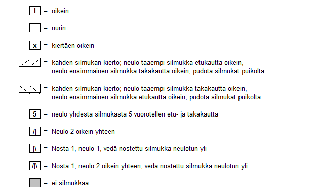24 s ja 35 krs sileää neuletta ja kuvioneuletta = 10 cm