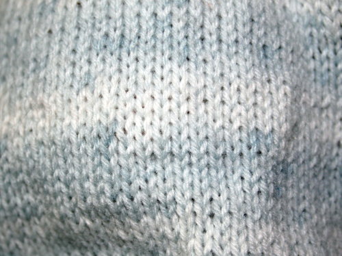Langan värikartalla on seitsemän hempeää väriä, joista testattavana oli vaaleansininen. Lanka ei ole yksiväristä vaan hieman kirjavaa ja valmis neule onkin kevyesti raidallinen. Raitaväri on erittäin kaunis ja lopputulos muistuttaa herkkää akvarellimaalausta.