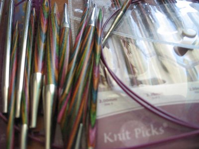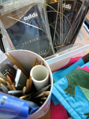 Puikot ovat langan jälkeen tärkein varuste. Niillä pääsee jo hyvin varustelemaan itseään kilpaa toisten neulojien kanssa. Niissäkin on huomattavissa trendejä: ensin tulivat bambupuikot ja nyt suosiossa ovat selvästi KnitPron Symfonie-puikot, jotka ovat koivua. Lisäksi puikkoja valmistetaan muun muassa ruusupuusta ja eebenpuusta. Kunnon neulojalla puikkoja on tietenkin paljon. Kutomossa niitä pyörii monessakin paikassa, yleensä siellä, missä niiden ei tulisi olla. Sukkapuikkojen määrä paljastaa sen, että täällä asuu yksi harras sukkien neuloja. Joka kokoa on vähintään kahdet, yleisimmin käytettyjä kokoja kuudetkin. Kutomossa puikkojen säilytykseen on useita erilaisia ratkaisuja. Sukkapuikoista osa asuu äidiltä saadussa keksipurkissa, osa Ionan tekemässä ihanassa puikkopussissa, ja suuri osa on aina kiinni jossain työssä. Pyöröpuikot asuvat nätisti Hammarplastin pienessä laatikossa, kokojärjestyksessä tietenkin. Ja löytyyhän täältäkin niitä paljon puhuttuja KnitPron Symfonie-puikkoja sekä kiinteinä pyöröpuikkoina että irrotettavina vaihtopääpyöröinä. Suoria puikkoja en käytä lainkaan, mutta sisäinen hamsterini ei ole siltikään sallinut niistä luopumista. Eihän sitä tiedä, jos niitä kuitenkin tarvitsee!