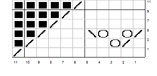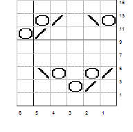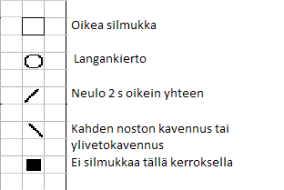 22 s ja 30 krs pitsineuletta suljettuna neuleena ruutupiirroksen mukaan = 10 cm